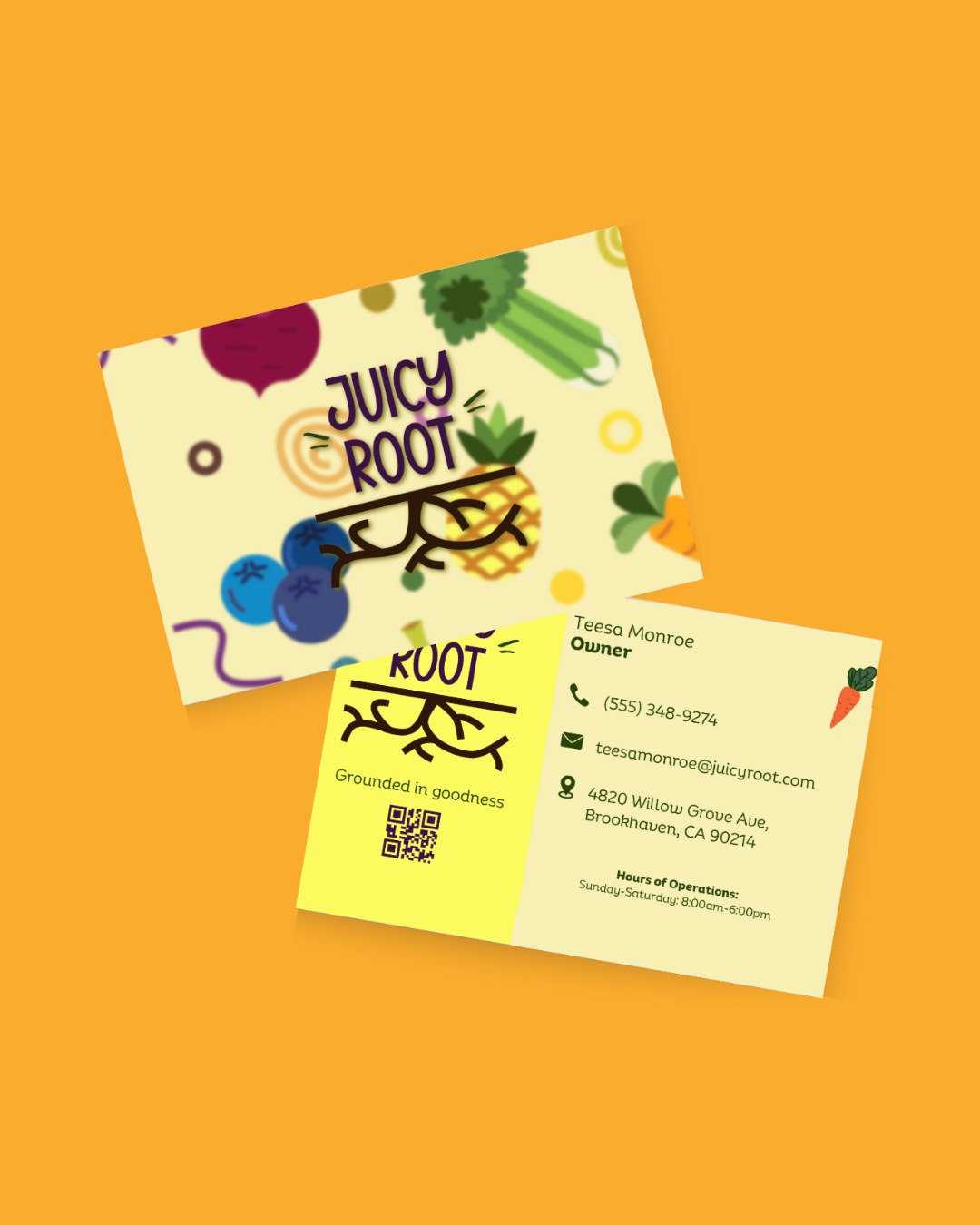 Juicy Root is a conceptual juice bar brand identity developed to demonstrate a complete branding workflow from initial ideation through polished mockups. This project showcases how a clear design process can transform a simple idea into a cohesive, compelling brand presence with thoughtful applications that feel ready for real-world use.